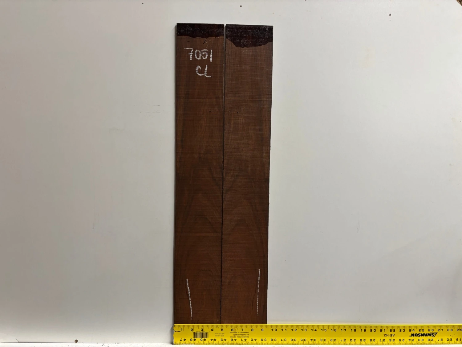 This classical guitar side set is crafted from exotic Amazon Rosewood, featuring deep brown tones with striking grain contrasts. Though marked as “Seconds” due to minor cosmetic flaws like surface blemishes or irregular figure, it retains the wood’s natural tonal warmth and clarity—ideal for classical builds focused on sound quality without the premium price tag.