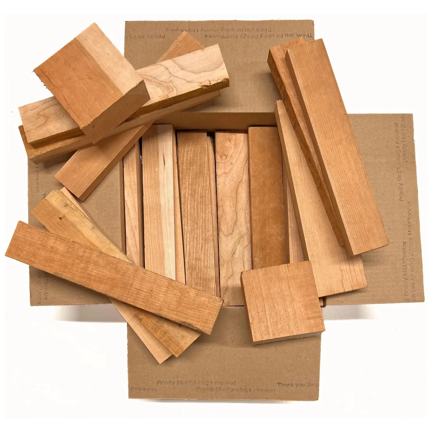 Box of Black Cherry Wood Scrap DIY Craft Carving Scroll Short Lumber Cutoff Boards