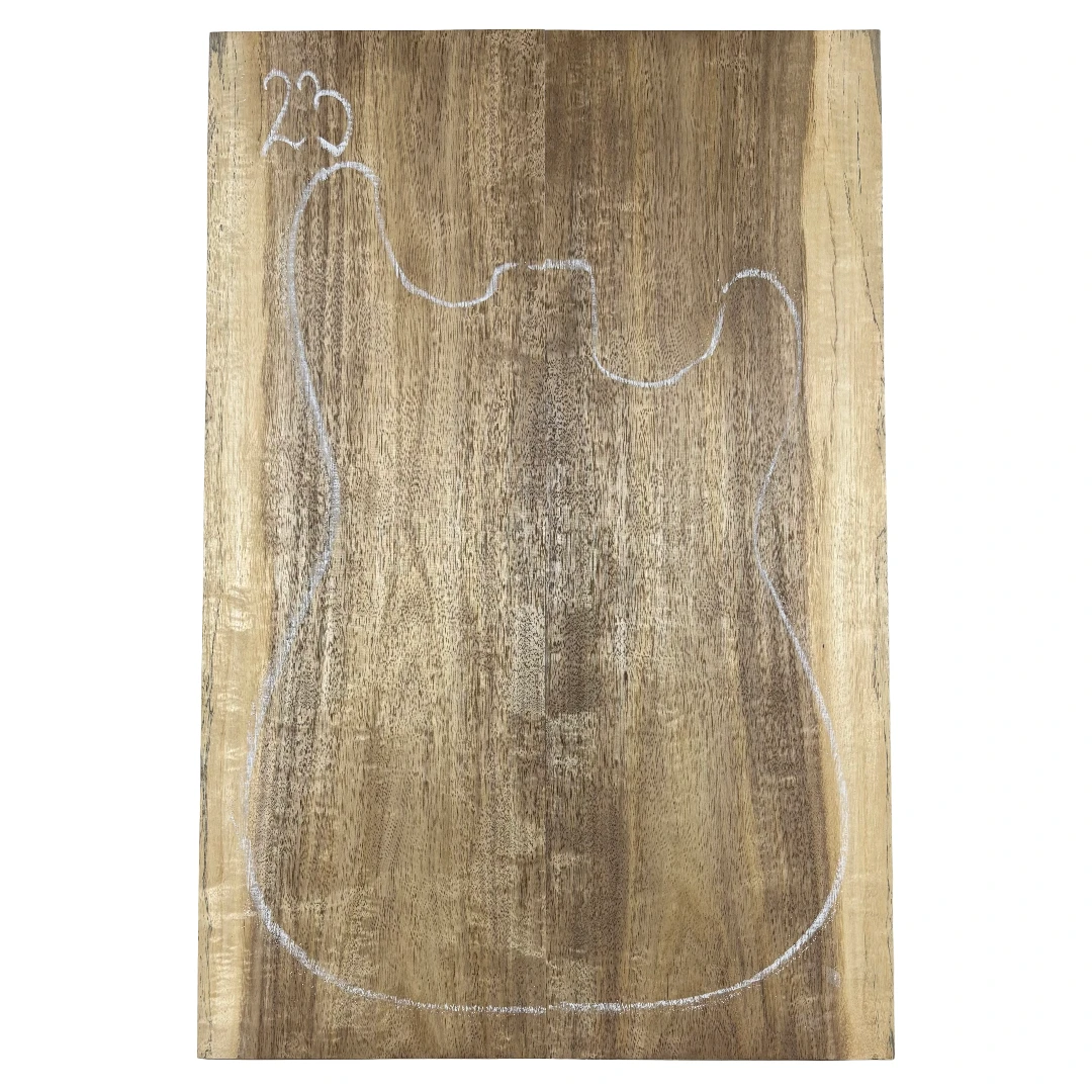 Bring your build to life with the bold beauty of this Flame Acacia Guitar Drop Top. Showcasing vivid flame figuring and rich golden-brown hues, this premium tonewood delivers stunning aesthetics and warm, articulate tone. The shimmering grain adds a dynamic, three-dimensional look that shifts with every angle — perfect for custom guitars that demand attention.