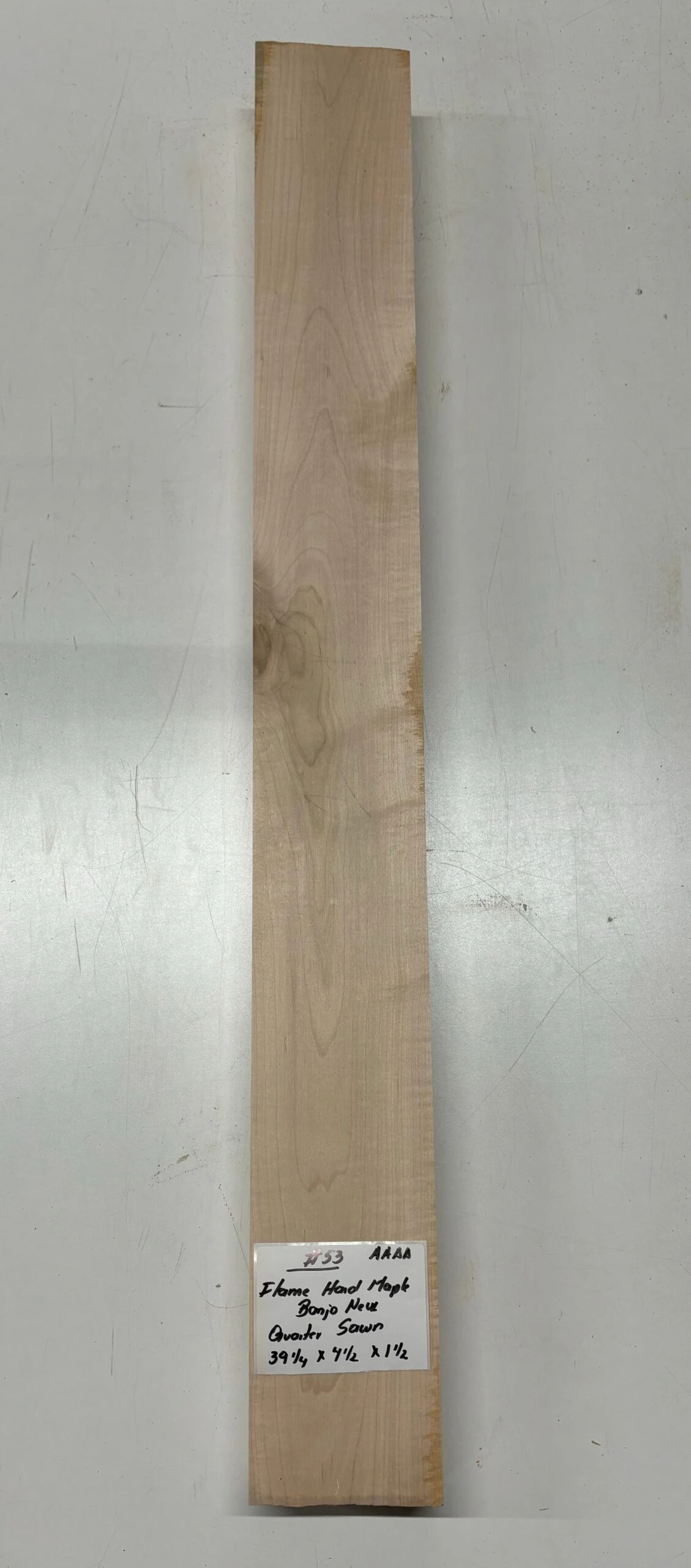 Elevate your banjo build with this Rare Find — a Flame Hard Maple Neck Blank of AAAA Grade quality. Renowned for its striking flame figure and bright, articulate tone, this Quarter Sawn neck blank offers both visual elegance and reliable performance. Ideal for luthiers seeking premium tonewood that combines beauty, stability, and crisp sound projection. Craft a banjo neck that stands out in both look and sound!