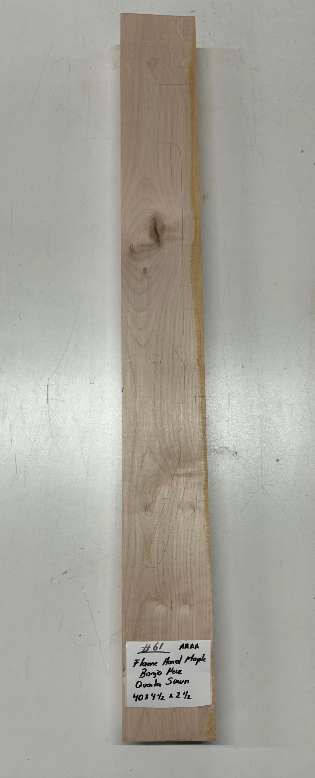 Elevate your banjo build with this Rare Find — a Flame Hard Maple Neck Blank of AAAA Grade quality. Renowned for its striking flame figure and bright, articulate tone, this Quarter Sawn neck blank offers both visual elegance and reliable performance. Ideal for luthiers seeking premium tonewood that combines beauty, stability, and crisp sound projection. Craft a banjo neck that stands out in both look and sound!