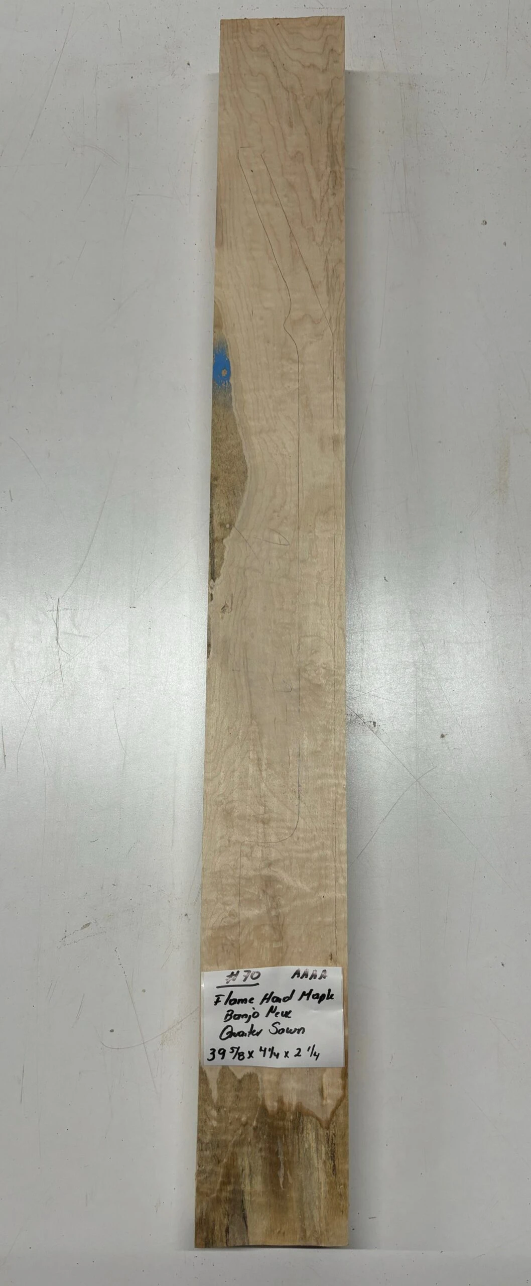 Elevate your banjo build with this Rare Find — a Flame Hard Maple Neck Blank of AAAA Grade quality. Renowned for its striking flame figure and bright, articulate tone, this Quarter Sawn neck blank offers both visual elegance and reliable performance. Ideal for luthiers seeking premium tonewood that combines beauty, stability, and crisp sound projection. Craft a banjo neck that stands out in both look and sound!