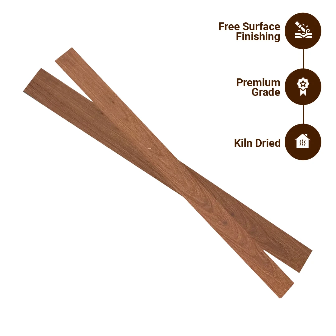 Heartwood color can be highly variable, ranging from a bright red to a darker reddish or purplish brown, frequently with darker stripes. Grain is straight to interlocked, with a medium to fine texture. High natural luster.