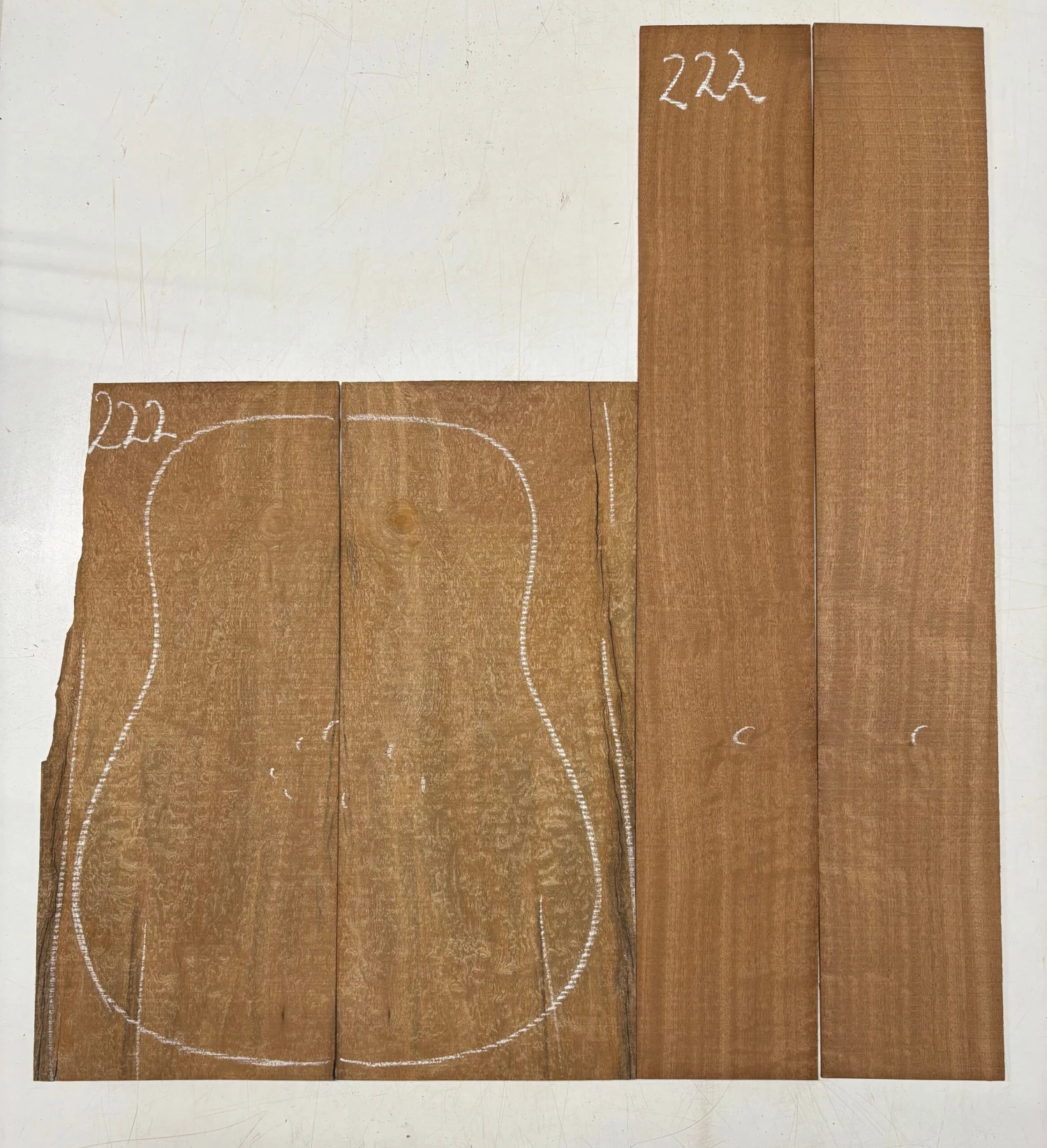 Experience the striking character of Quilted Sapele (Entandrophragma cylindricum), a stunning African hardwood prized for its wavy, three-dimensional grain and rich golden-brown color. This Seconds-grade dreadnought back and side set features visible pinholes—along with other minor cosmetic imperfections like surface blemishes, figure mismatch, or small checks. While visually imperfect, the set is structurally sound and perfect for practice builds, experimental projects, or rustic-themed custom guitars.